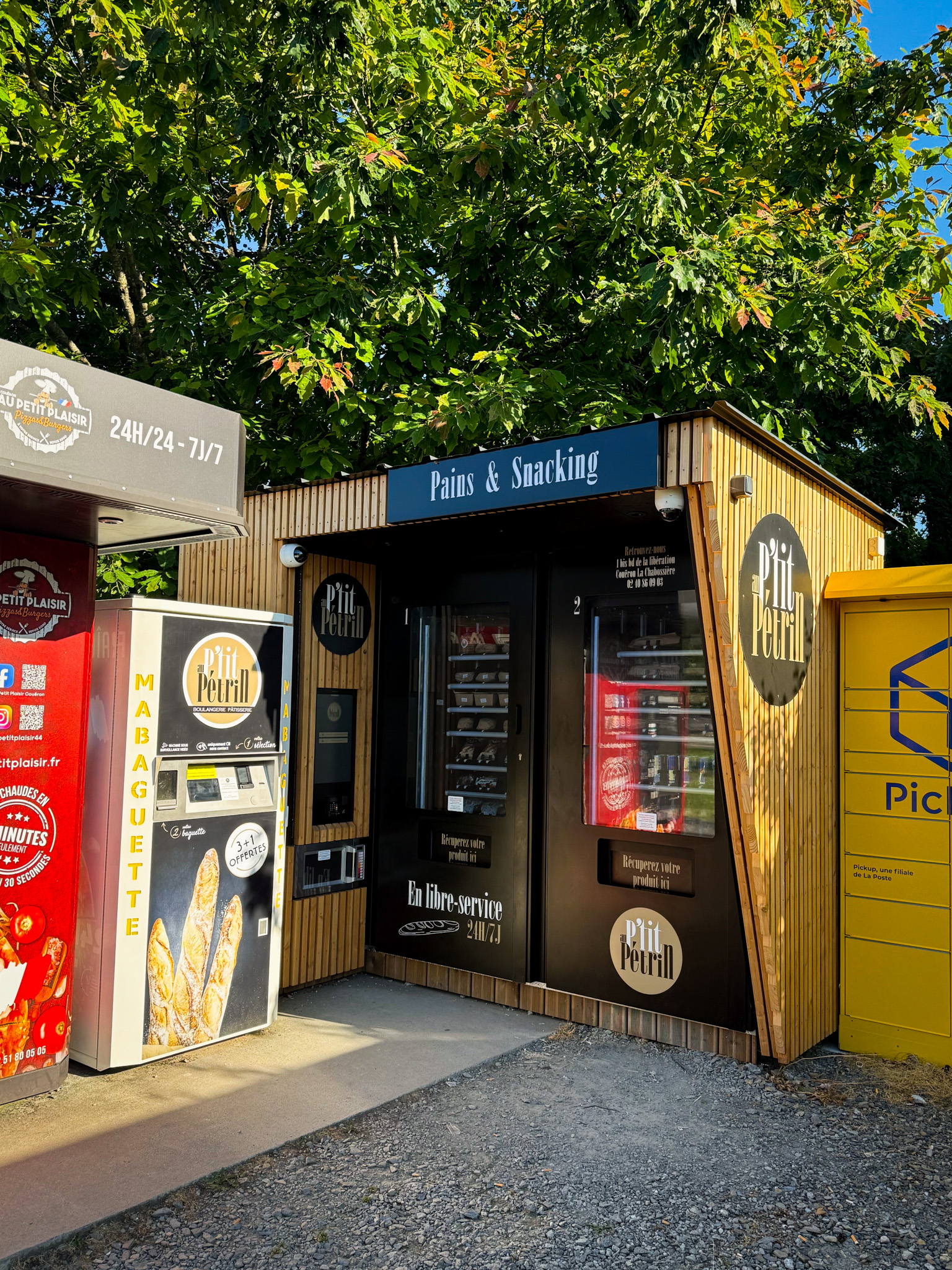 Juste à côté, vous trouverez aussi un distributeur à baguettes pour dépanner à toute heure. Il est lui aussi rempli avec nos baguettes du jour.
